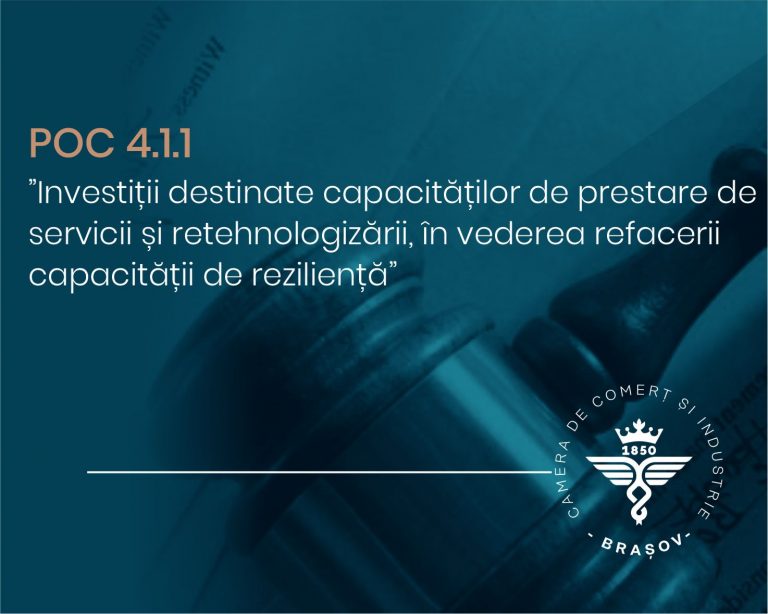 Camera de Comerț și Industrie Brașov anunţă programul de finantare POC 4.1.1 “Investiții destinate capacităților de prestare de servicii și retehnologizării, în vederea refacerii capacității de reziliență”.