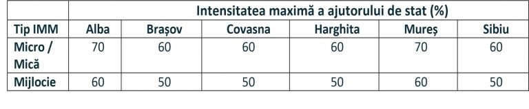 întreprinderilor mijlocii din mediul urban și rural – au între 50 și mai puțin de 250 salariaţi şi realizează o cifră de afaceri anuală netă de până la 50 milioane euro, echivalent în lei, sau deţin active totale care nu depăşesc echivalentul în lei a 43 milioane euro.